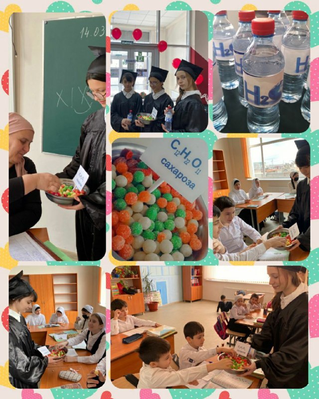 Учителя химии, биологии и физики встречали ребят у входа в школу, поздравляли с открытием недели и угощали ребят глюкозой.