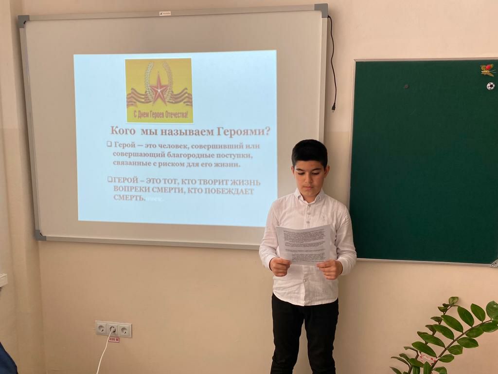 20.04.202220.04.2022 для обучающихся 7 "Б" класса учителем истории Джонхотовой Р.Х. был проведен внеклассный урок на тему «Ценности и героизм» цикла «Герои Нашего Времени».Цель урока: формирование у обучающихся моральных ценностей в контексте патриотического воспитания.Ребята на примере жизненного пути Героя Российской Федерации – Алексея Борисовича Бернгарда познакомились с новейшей историей России.