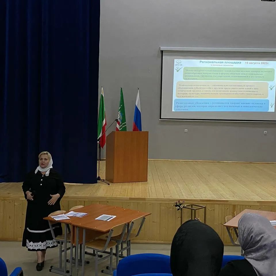 17.08.202217 августа 2022 года на очной площадке МБОУ "СОШ 3" г.Грозного в рамках проекта "Разноворы о важном" состоялась встреча заместителей директоров по воспитательной работе и классных руководителей общеобразовательных организаций Байсангуровского района на тему "Единство в многообразии: объединяющий потенциал Российской истории".
