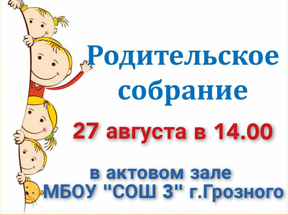 27 августа 2022 года в МБОУ "СОШ №3" г. Грозного пройдет общешкольное родительское собрание. Приглашаем всех!