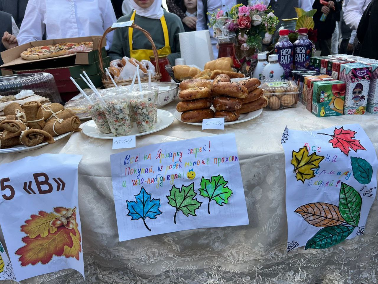 На ярмарке продавали не только дары осени, но и вкусный плов, хот-доги, корн-доги, сладкую вату и мороженое.Каждый класс постарался как можно ярче и оригинальнее оформить свое «торговое» место. По итогам конкурсов были определены классы-победители.Коллектив школы выражает огромную благодарность ученикам и их родителям за активное участие в празднике.