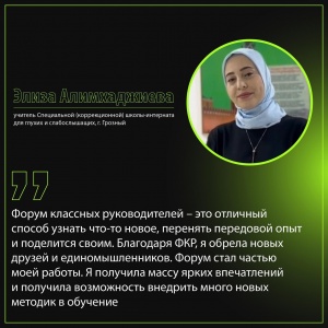 В прошлом году Чеченская Республика делегировала на форум 23 педагога. Одна из участниц форума Элиза Алимхаджиева рассказала о своих впечатлениях от ФКР-2022.