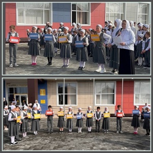 Учебная неделя в «СОШ № 3» г. Грозного началась с торжественного исполнения Государственных гимнов Российской Федерации и Чеченской республики.