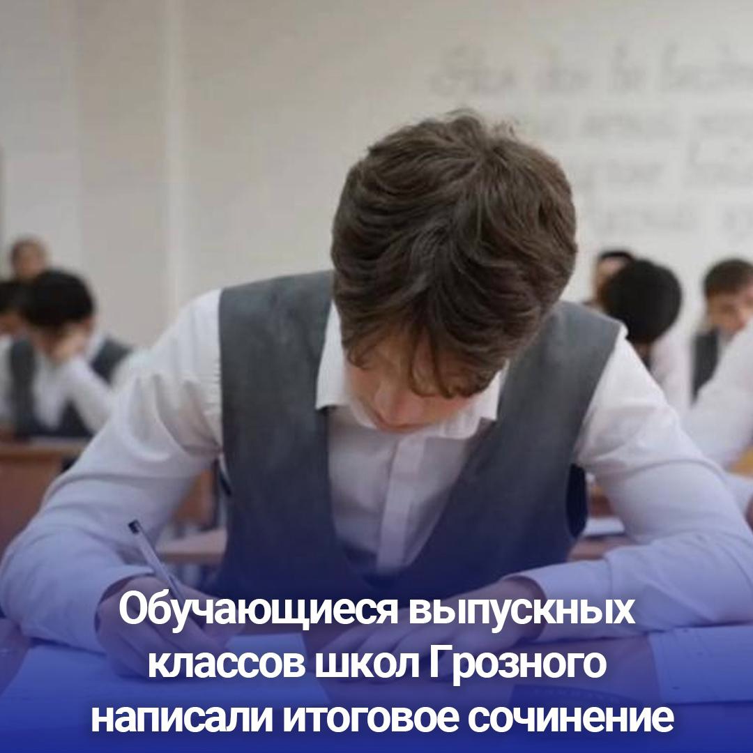09.12.20241690 будущих выпускников грозненских школ, в том числе 180 учеников с ОВЗ, написали итоговое сочинение.Учащимся было предложено выбрать одну из шести тем и написать сочинение за 3 часа 55 минут (235 минут). Участникам с ограниченными возможностями здоровья дали на 1,5 часа больше.Работы оцениваются по системе «зачёт» или «незачёт».